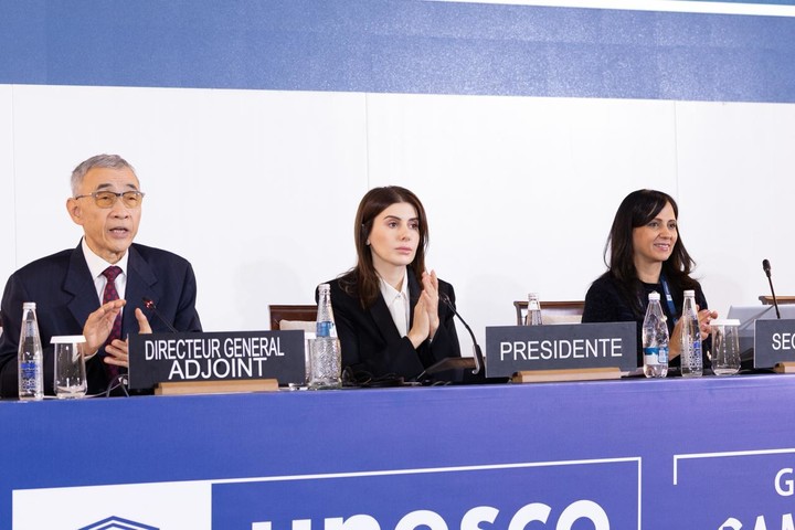 ЮНEСКО Бош директори ўринбосари Син Сюй (Хинг Қу) ва ЮНEСКО ишлари бўйича Ўзбекистон Миллий комиссияси раиси, Ўзбекистон Маданият ва санъатни ривожлантириш жамғармаси раиси, Президент Администрацияси Креатив иқтисодиёт ва туризм бўйича департаментининг раҳбари Гаяне Умерова табрик сўзларини йўлладилар. Учрашувга раислик қилиш учун сайланган Гаяне Умерова ўз нутқида Самарқанднинг тамаддунлар чорраҳаси сифатидаги рамзийлигини таъкидлаб, ЮНEСКО томонидан белгилаб берилган шериклик ва бирдамлик руҳини янгилаш муҳимлигини қайд этди.