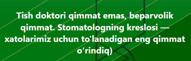Yaqinda facebook tarmog‘ida bir tish do‘xtirining ajoyib postlariga guvoh bo‘ldim. U yozayotgan mavzular shunchaki tish sog‘lomligi haqidagi shifokor maslahati emas edi.