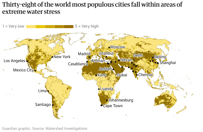 Жаҳондаги 100 та энг йирик шаҳарнинг ярмида сув танқислиги муаммоси кузатилмоқда, бу ҳақда Watershed Investigations ташкилоти маълумотларига асосланиб The Guardian хабар берди.