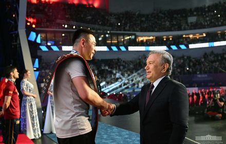 Давлатимиз раҳбари 13 май куни юртимиз боксчилари иштирокидаги финал жангларини кузатди. Қизғин ва муросасиз ўтган баҳсларда Асадхўжа Мўйдинхўжаев қозоғистонлик Дулат Бекбауовни, Ҳасанбой Дўсматов франциялик Билал Беннамани, Баҳодир Жалолов кубалик Алехандро Арзолани енгиб, олтин медални қўлга киритди.