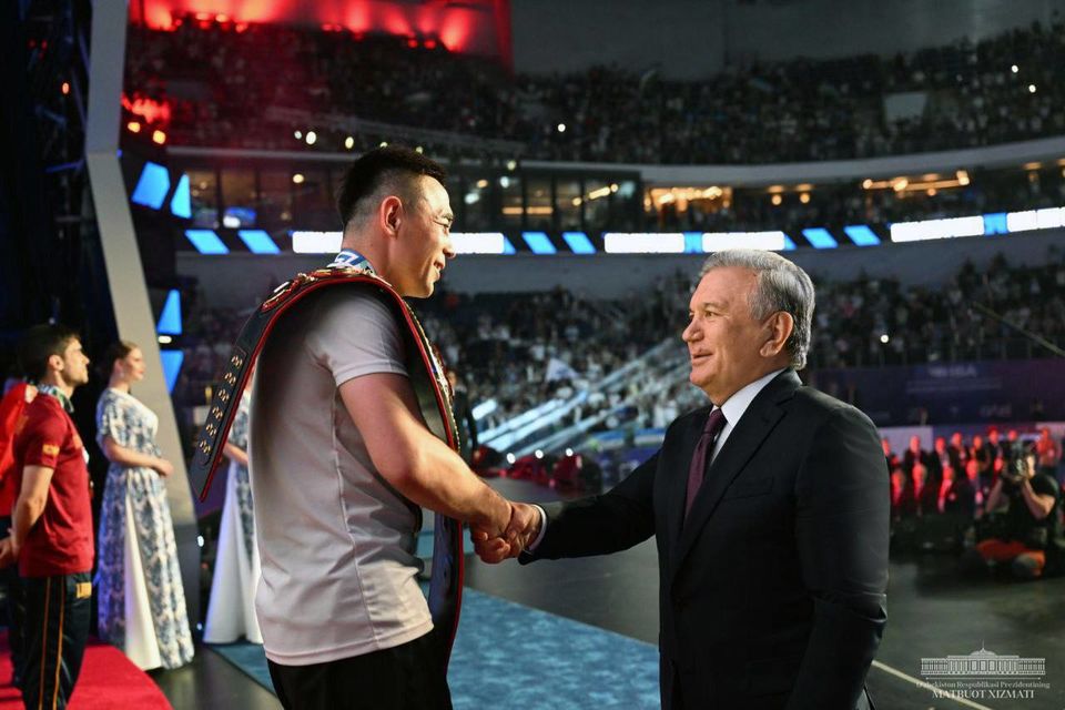 Президент Шавкат Мирзиёев «Humo Arena» спорт саройига ташриф буюриб, бокс бўйича жаҳон чемпионатини томоша қилди.