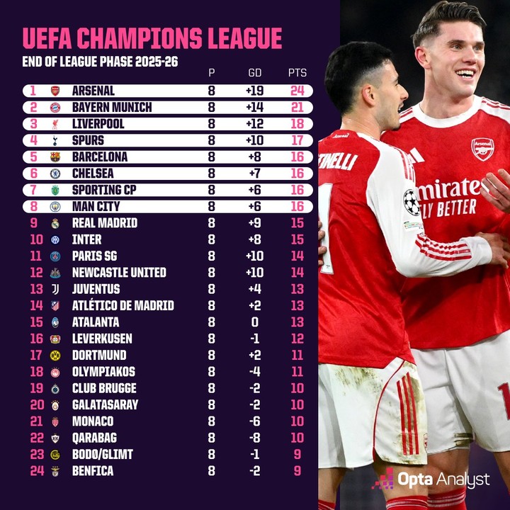 УЕФА Чемпионлар лигаси 2025/2026 йилги мавсумининг умумий босқичи ўз якунига етди. 29 январга ўтар кечаси бўлиб ўтган 8-тур баҳсларидан сўнг нимчорак финалга тўғридан-тўғри йўл олган ва плей-оффда иштирок этадиган жамоалар номи маълум бўлди.