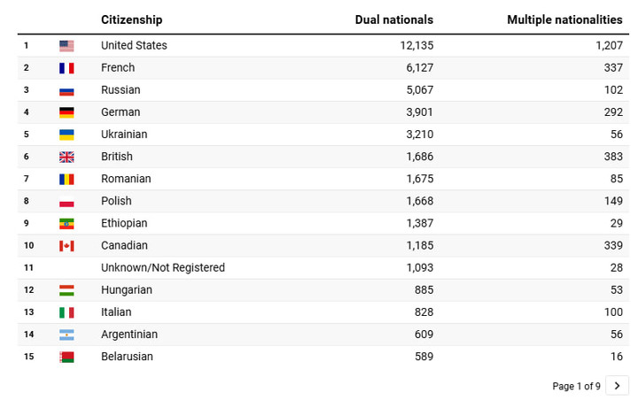 Ma’lumotlarga ko‘ra, eng katta guruhni AQSh fuqarolari tashkil etadi – 12 mingdan ortiq askar AQSh pasportiga ega. Shuningdek, Fransiya, Rossiya, Ukraina, Germaniya, Buyuk Britaniya, Braziliya, Kanada va boshqa davlatlar fuqarolari ham xizmat qilayotgani qayd etilgan. Ushbu raqamlar 2025-yil mart holatiga tegishli.